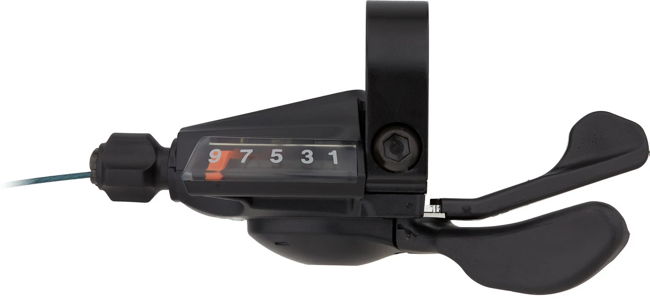 Spezifikationen:Serie:Alivio M3100Einsatzbereich:All Mountain, Cross CountrySchaltstufen:3-fach, 9-fachMontage:Klemmschelle (geschlossen)Technische Daten:Typ:Rapidfire PlusMaterial Gehäuse:AluminiumMaterial Hebel:Kunststoff (Resin), StahlInnenzug:Stahl (Optislick)Außenhülle:OT-SP41 (nicht im Lieferumfang)Optische Ganganzeige:JaEinstelloptionen:ZugeinstellungKompatibilität:MTB 3×9-fach: