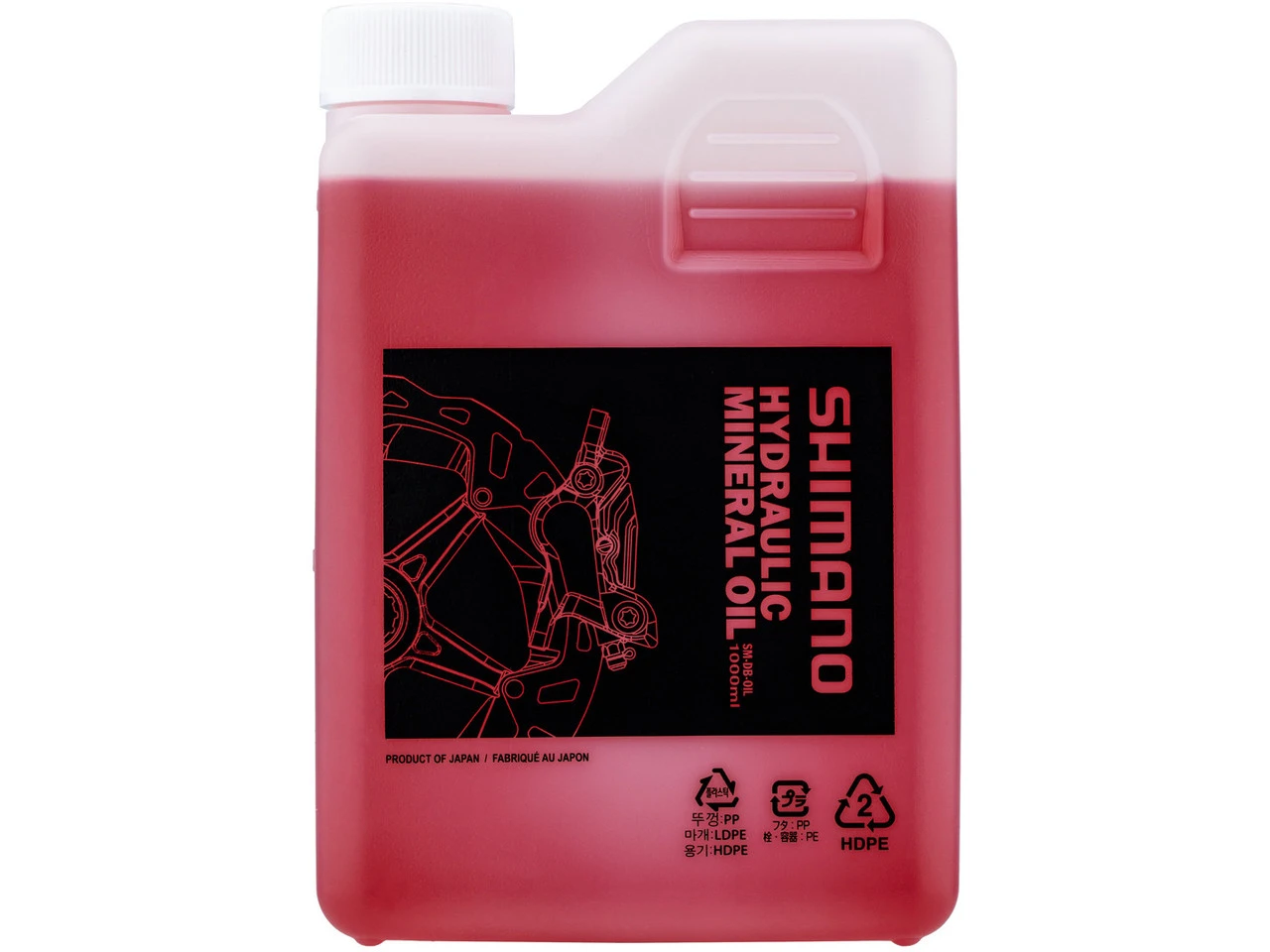 Dieses Mineralöl ist die geeignete Bremsflüssigkeit für alle hydraulischen Scheibenbremsen von Shimano, egal ob MTB, Road, Gravel oder Trekking. Da es kein Wasser bindet, hat Mineralöl gegenüber DOT den Vorteil einer länger konstant bleibenden Qualität – man muss es nicht so oft austauschen. Shimano Mineralöl ist als 100-ml- oder 500-ml-Flasche oder 1-Liter-Kanister erhältlich. Ein Trichter-Entlüftungskit M5, ein Trichter-Entlüftungskit M7 für die Gebereinheit und ein Profi-Entlüftungskit für die komplette Scheibenbremse sind separat erhältlich. Bitte achte bei der Bremsenwartung darauf, dass kein Öl auf die Bremsscheiben gerät.