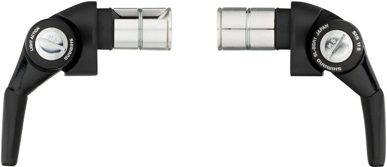 Die Shimano Dura-Ace SL-BSR1 Schalthebel sind Lenkerendschalthebel, die zur 9000er Gruppe gehören. Sie bieten die bewährte Präzision der Shimano Indexschaltung für Zeitfahrräder mit 2×11-fach Antrieb. Die formschönen Hebel wurden aus Aluminium gefertigt und kommen mit einem Klarlack-Finish. Die mitgelieferten Schaltzüge verfügen über die sogen. SIL-TEC Beschichtung, mit der eine glatte Funktion befördert und Verschleiß vorgebeugt wird.