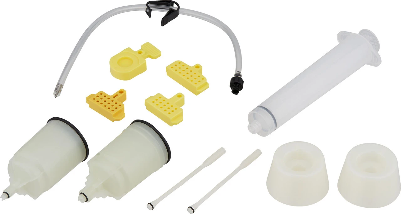 1 x Entlüftungsspritze Shimano TL-BR0011 x Öltrichter Shimano TL-BR002 für ST-Bremsgriffe1 x Öltrichter Shimano TL-BR003 für BL-Bremsgriffe1 x Schlauch mit Entlüftungsnippel1 x Schlauchclip2 x Trichterfuß2 x Trichterdeckel2 x Ölstopper4 x EntlüftungsblockDirekt mitbestellen:Shimano Mineralöl