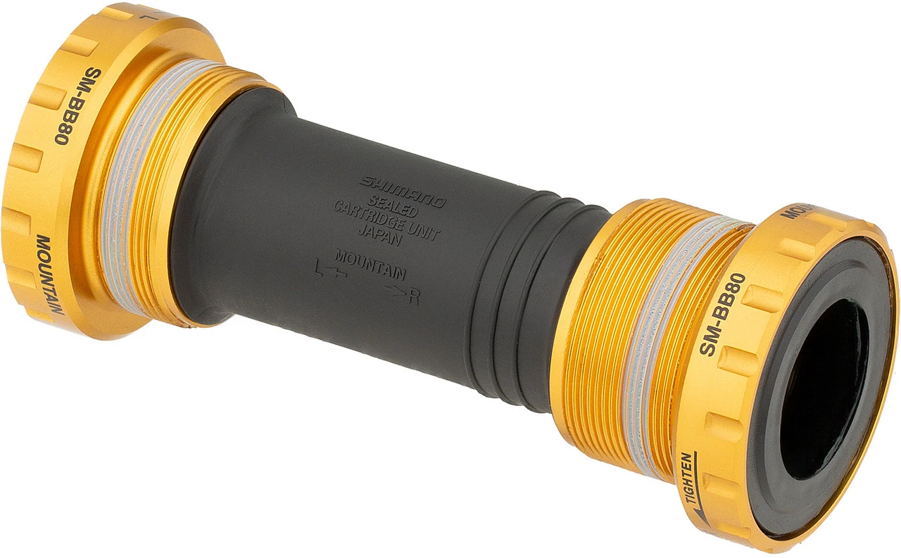 Das Innenlager SM-BB80 von Shimano gibt es in einer Version für 68 und 73 mm Gehäusebreite und in einer Ausführung für 83 mm Gehäusebreite. Mit seinen goldenen Lagerschalen passt es perfekt zur Saint FC-M820 und FC-M825 Kurbel. Es handelt sich um ein Hollowtech II-Innenlager mit 24 mm Achsdurchmesser für BSA-Rahmen.