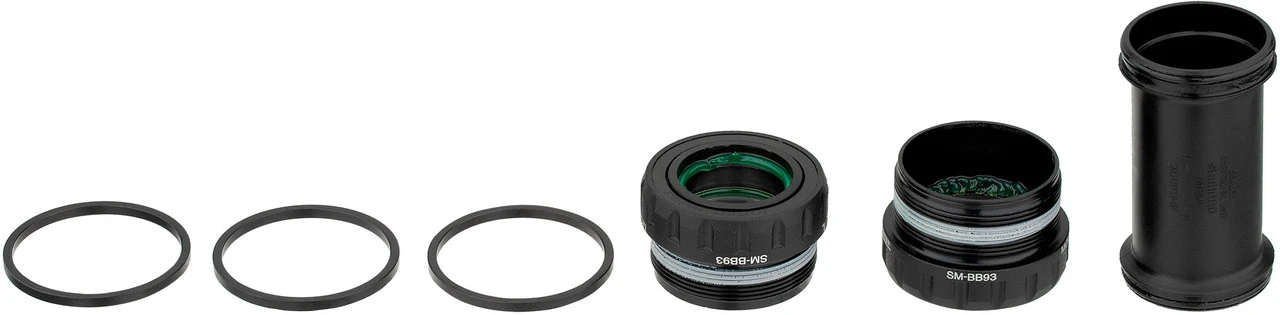 Lieferumfang:1 x Lagerschale Shimano SM-BB93 rechts mit Lager1 x Lagerschale Shimano SM-BB93 links mit Lager1 x Innenlagerhülse Shimano3 x SpacerDirekt mitbestellen:Innenlagerwerkzeug TL-FC32Innenlageradapterwerkzeug TL-FC24